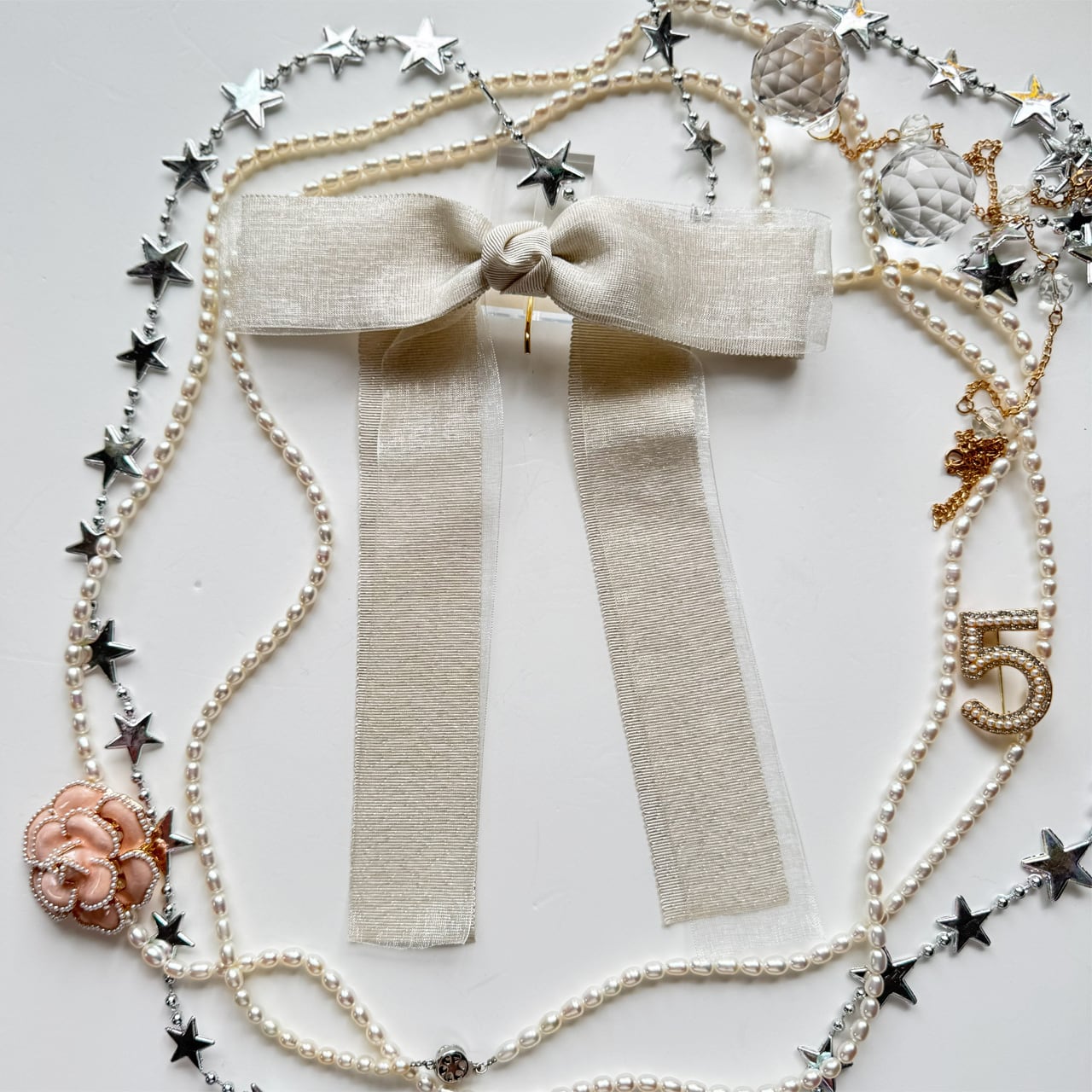 [ポニーフック]ふんわりラメグログラン/Vanilla(バニラ))|品よくきらめく可憐なヘアリボン