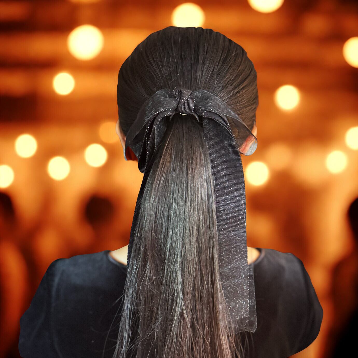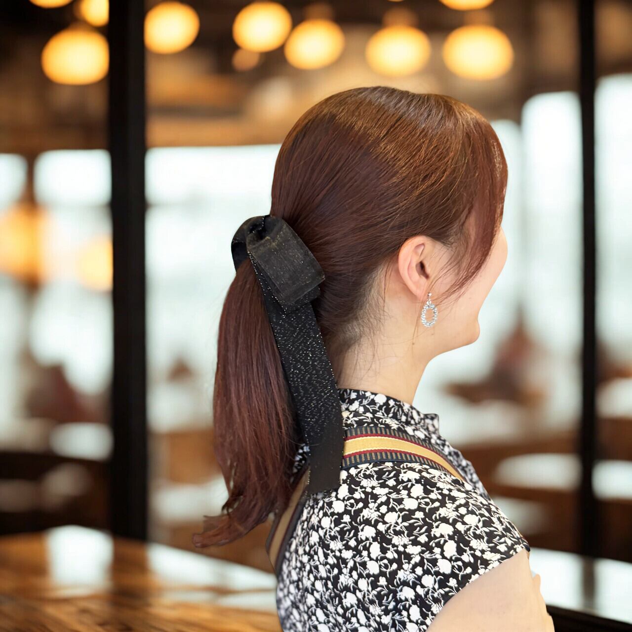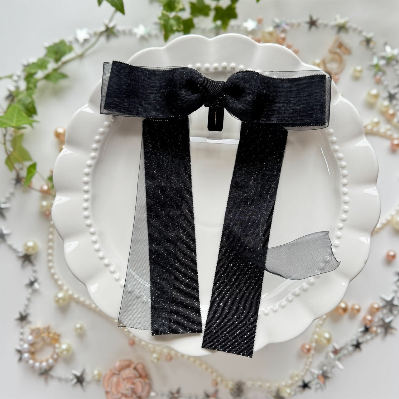 [ポニーフック]ふんわりラメグログラン/Black(ブラック)|品よくきらめく可憐なヘアリボン