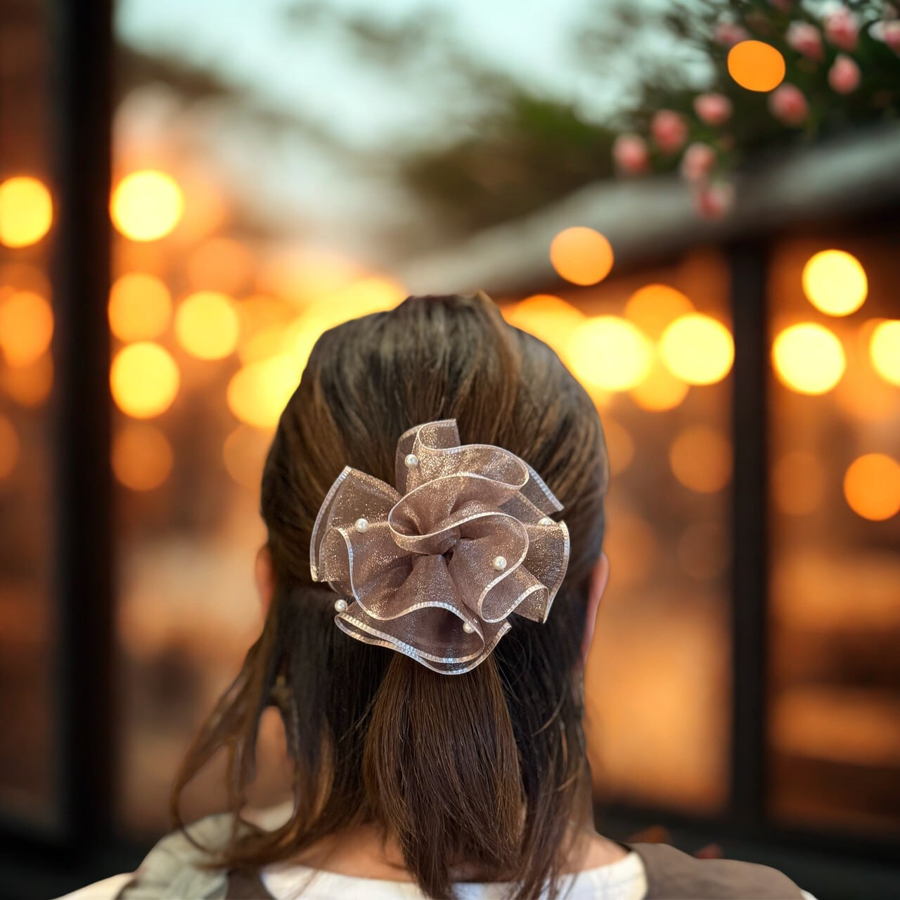 透け感のあるリボンが、やわらかな光をそっと包みます。