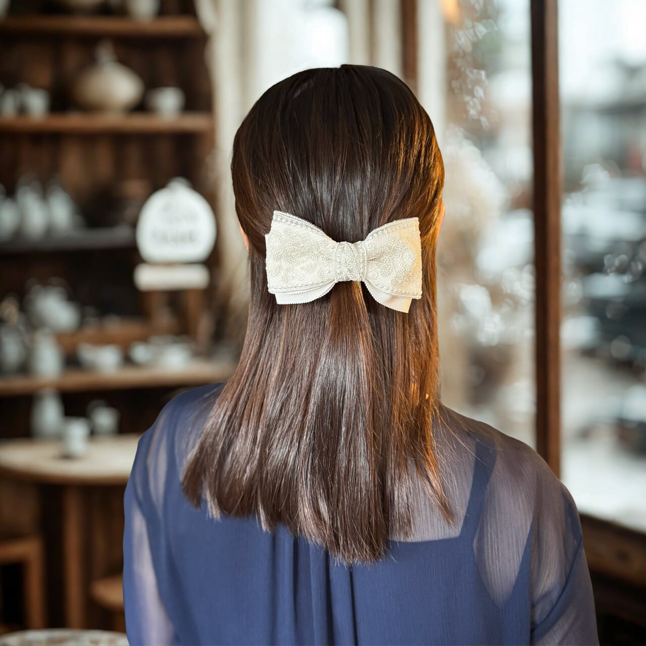 その際は、結んだ髪の半分ほどをすくうようにしてバレッタを留めると、安定感が出て崩れにくく、リボンの形もきれいに保てます。