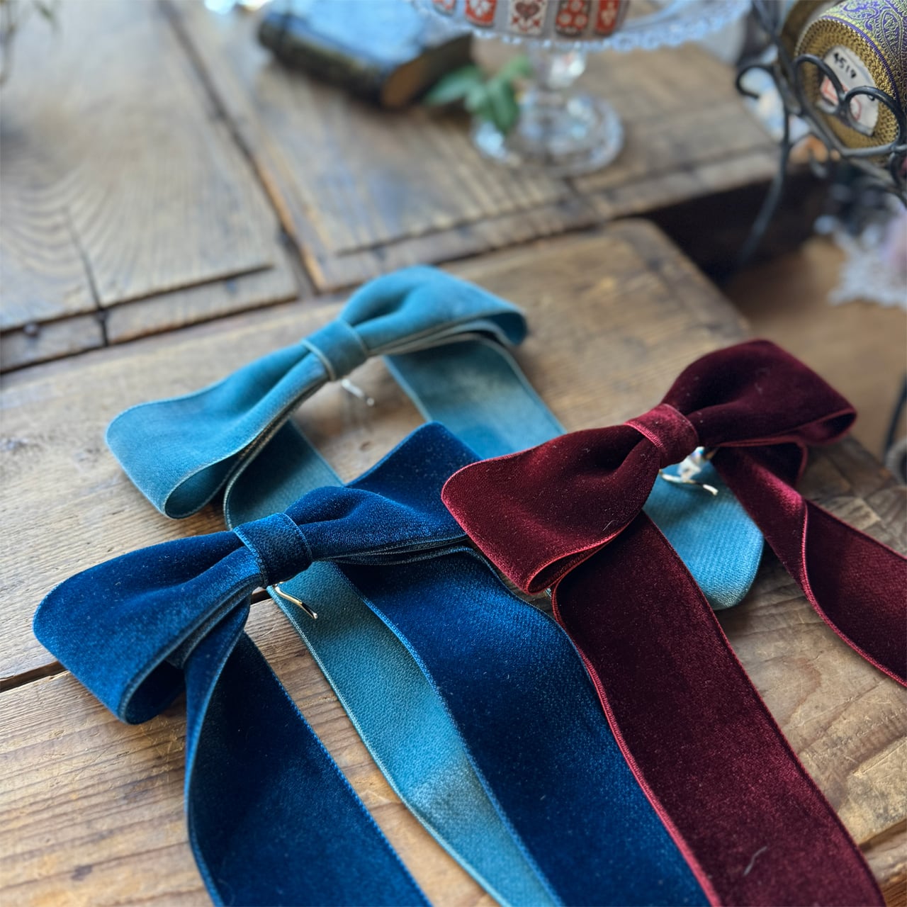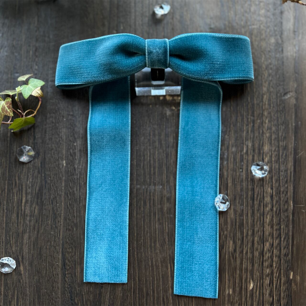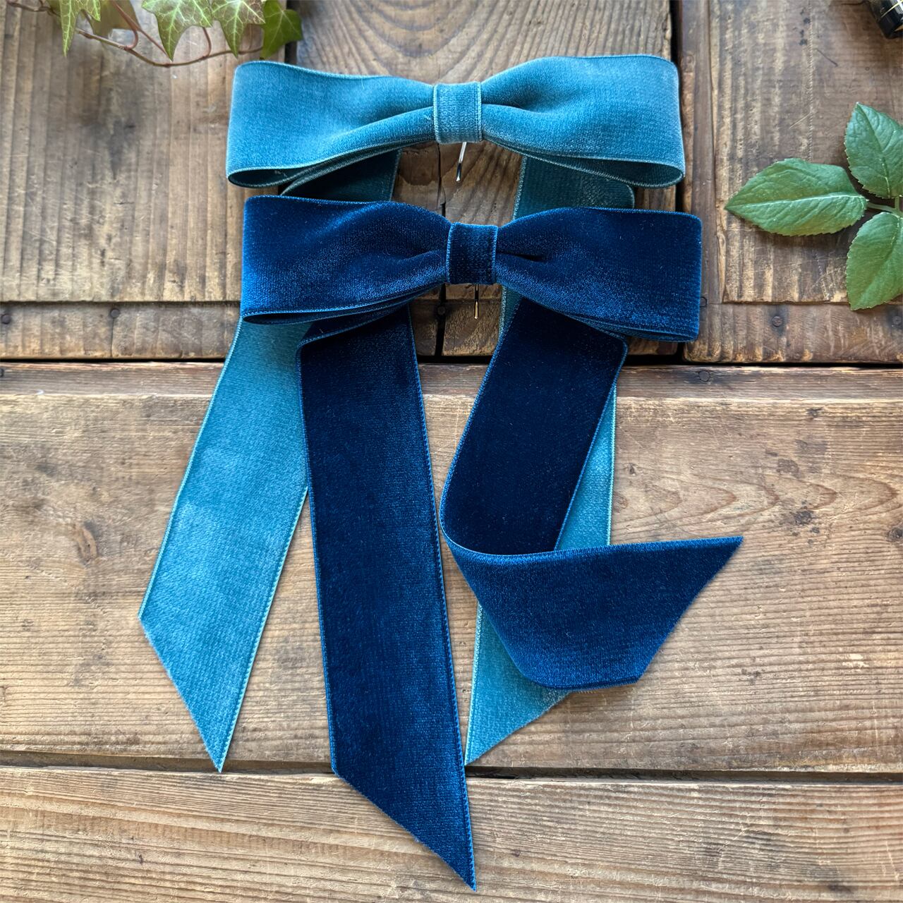 【ポニーフック】ベロアリボン/アンティークブルー(36mm幅・221)
