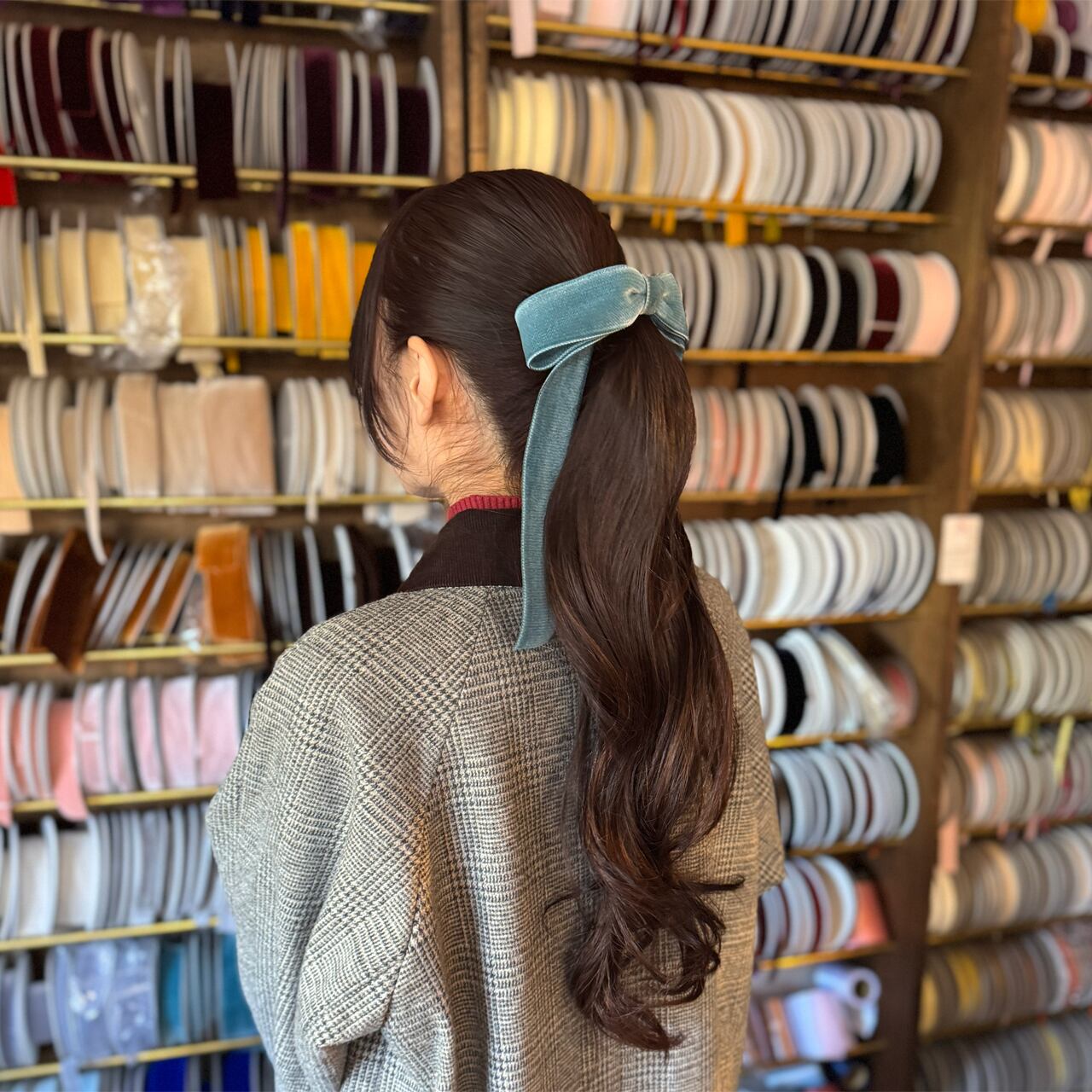 しっとりとした質感が髪になじみ、結び目を整えてくれます。