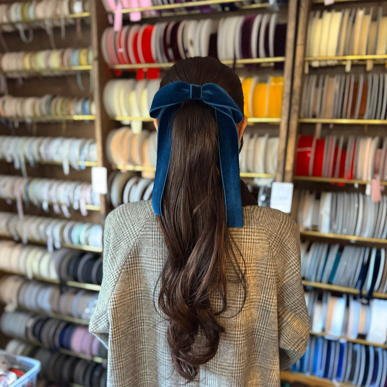 しっとりとした質感が髪になじみ、結び目を整えてくれます。