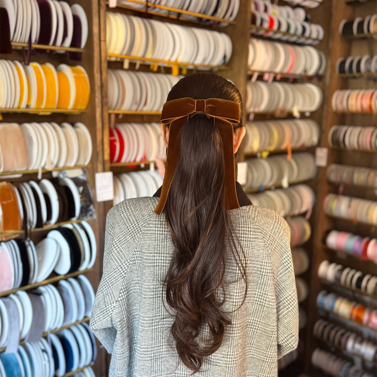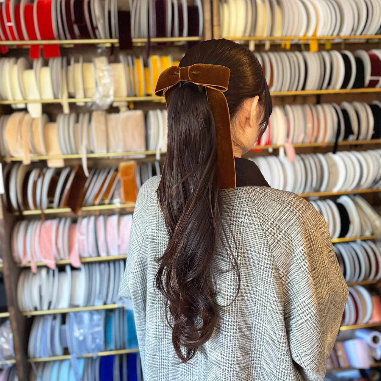 しっとりとした質感が髪になじみ、結び目を整えてくれます。